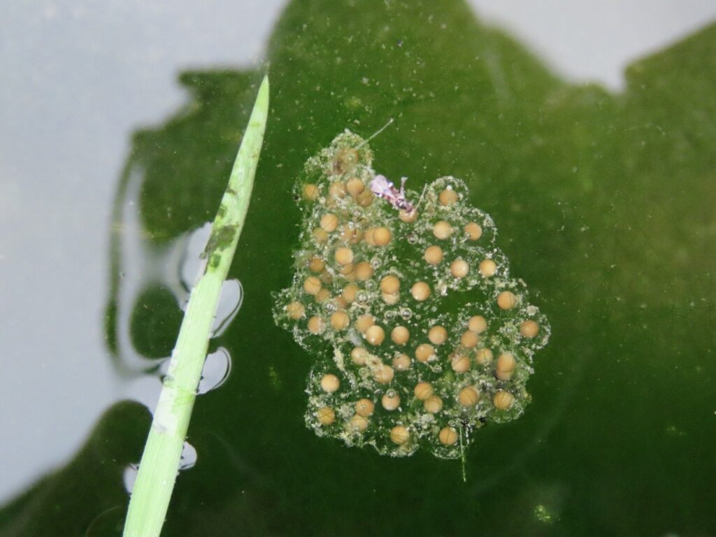 Puesta de huevos de rana común (Pelophylax perezi). Fotografía: Jorge Ortiz. AUDEMA.